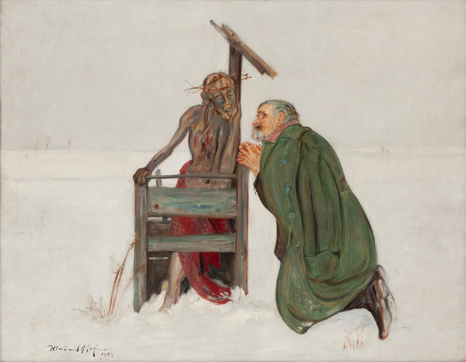 6. Wspomniany już obraz "Spowiedź" powstał z bezpośredniej obserwacji sceny w podhalańskim krajobrazie. Artysta zobaczył biednego starca klęczącego przy kapliczce. Widok ten zrobił na malarzu tak silne wrażenie, że szybko naszkicował całą scenę na miejscu, jeszcze zanim starzec zakończył modlitwę. Choć dziś "Spowiedź" uznawana jest za jedno z najważniejszych dzieł Hofmana, jej pierwsza prezentacja spotkała się z ostrą krytyką, zwłaszcza ze strony duchowieństwa, które zarzucało artyście zbyt "prymitywne" ujęcie postaci Chrystusa.