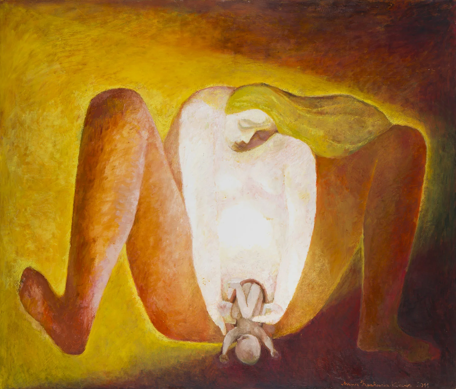 Jednocześnie Szpakowska-Kujawska nie ogranicza swoich prac do wymiaru biologicznego. Poprzez redukcję tła i zawieszenie postaci w niemal bezczasowej przestrzeni otwiera je na szerszy kontekst społeczny i polityczny. Narodziny przestają być wyłącznie doświadczeniem jednostki, stają się polem napięć między tym, co prywatne, a tym, co regulowane i narzucane.