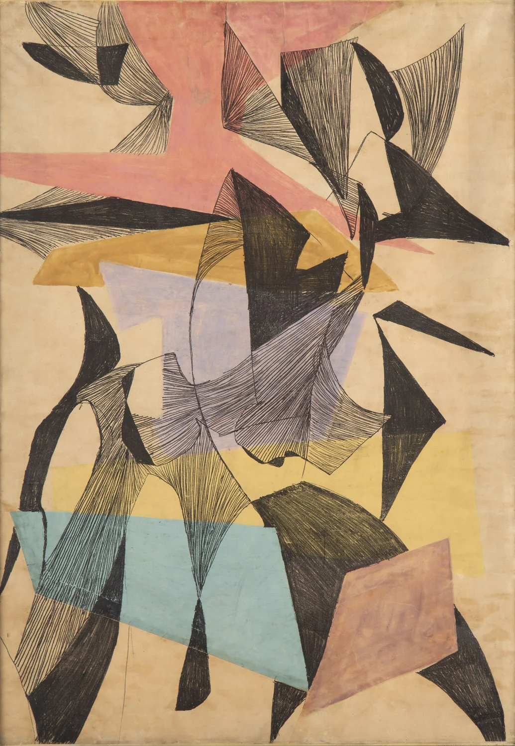 Choć prace z lat 50. powstają już wyłącznie w płaszczyźnie obrazu, noszą w sobie pamięć rzeźbiarskiego myślenia o formie. W "Kompozycji" układ kształtów zachowuje wewnętrzną architekturę – przestrzeń zbudowaną z napięć i kontrastów, z wyczuwalnymi osiami ciężkości. W "Formach" struktura ulega rozpuszczeniu: barwne plamy miękko się przenikają, tworząc organiczny układ przypominający komórkowe tkanki czy mikroskopowe światy natury. Związek z ciałem i ruchem pozostaje tu zasadniczy. Choć Jarema odchodzi od figuracji, jej obrazy nie rezygnują z antropomorficznych skojarzeń – raczej transponują je w język rytmu i pulsacji. Ciało zostaje rozbite na cząstki koloru, na dynamikę energii. W tym sensie monotypie artystki są malarskim odpowiednikiem żywego organizmu: oddychają, migoczą, ewoluują w czasie spojrzenia.