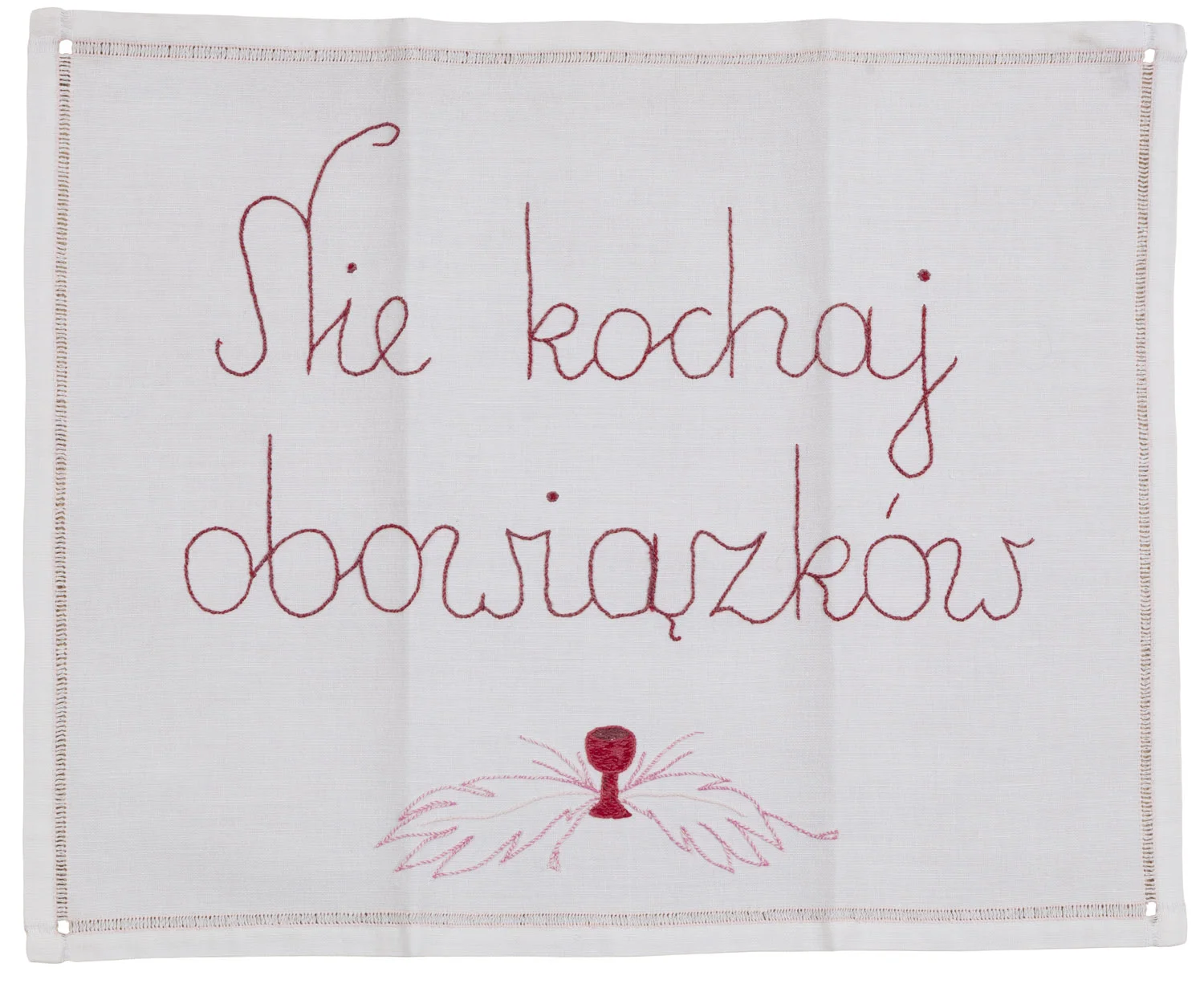 Bettina Bereś w swoich pracach łączy malarstwo z haftem i tkaniną, przekształcając przedmioty codziennego użytku w przestrzeń refleksji. Jej makatki, obrusy, serwetki i prześcieradła pokryte są wyhaftowanymi zdaniami – autoironicznymi, refleksyjnymi formułami, które komentują rolę kobiety, stereotypy czy upływ czasu. Twórczość Bettiny Bereś wyrasta z tradycji kobiecej pracy ręcznej, ale daleko wykracza poza jej konwencje. Obrusy, prześcieradła i makatki stają się u niej przestrzenią opowieści: haftowane zdania komentują codzienność, stereotypy i rolę kobiety. Bereś wykorzystuje tkaninę jako nośnik doświadczeń intymnych, choć zarazem wspólnych. Materiał staje się świadectwem, a haftowany zapis gestem stawiania oporu wobec narzuconych oczekiwań.