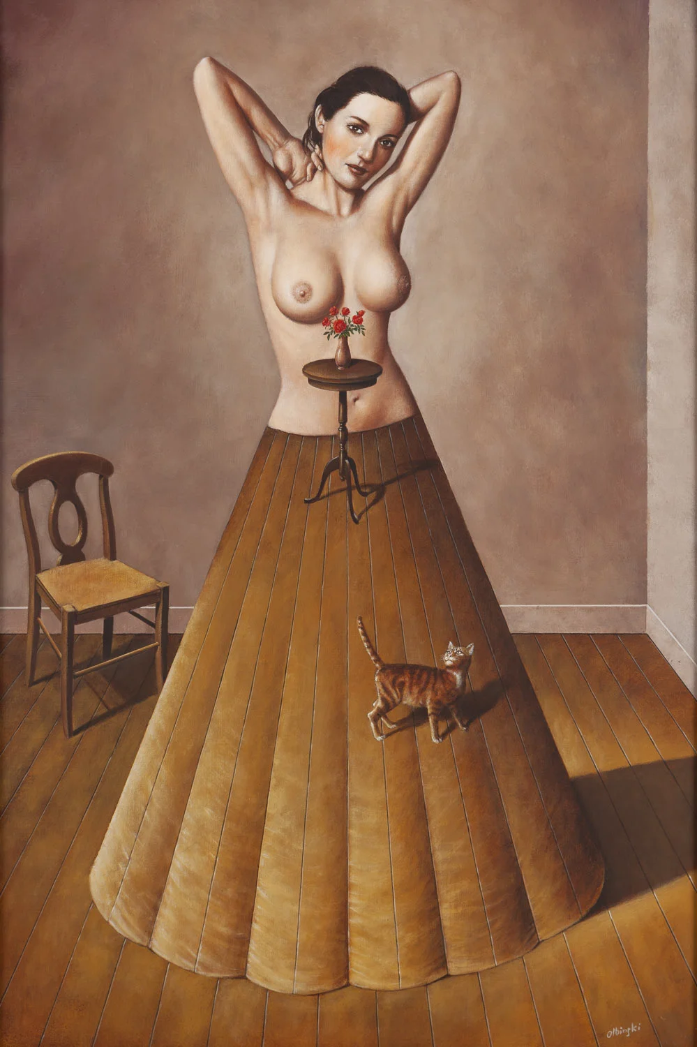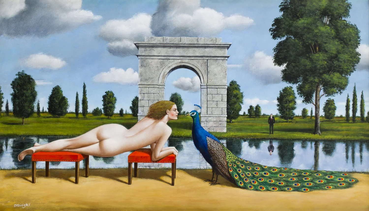 Rafał Olbiński, urodzony w 1943 roku w Kielcach, należy do nielicznego grona polskich artystów, którzy z powodzeniem przekroczyli granice lokalnej kultury, zdobywając trwałą pozycję na międzynarodowej scenie sztuki. Jego twórczość – obejmująca ilustrację, plakat, malarstwo i scenografię – stanowi wyjątkowe połączenie architektonicznej precyzji z wyobraźnią zakorzenioną w estetyce surrealizmu. Już w czasach studiów na Wydziale Architektury Politechniki Warszawskiej, ukończonych w 1969 roku, Olbiński wykazywał zamiłowanie do eksperymentowania z formą i wizualną narracją. Wczesne projekty dla "Jazz Forum" oraz okładki płyt – m.in. dla Krzysztofa Klenczona czy zespołu Breakout – ujawniały jego talent do tworzenia obrazów będących zarówno metaforą, jak i autonomiczną opowieścią.