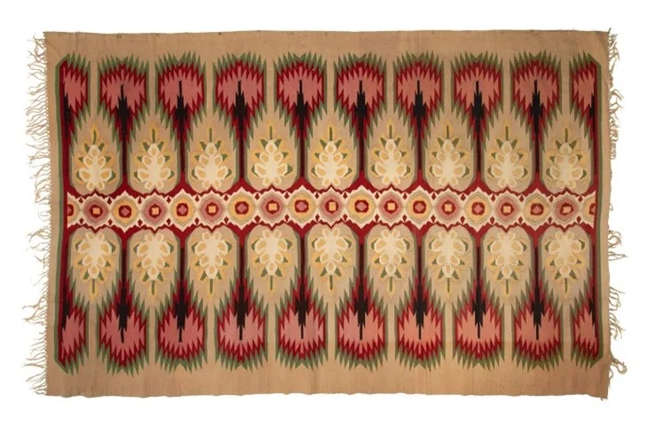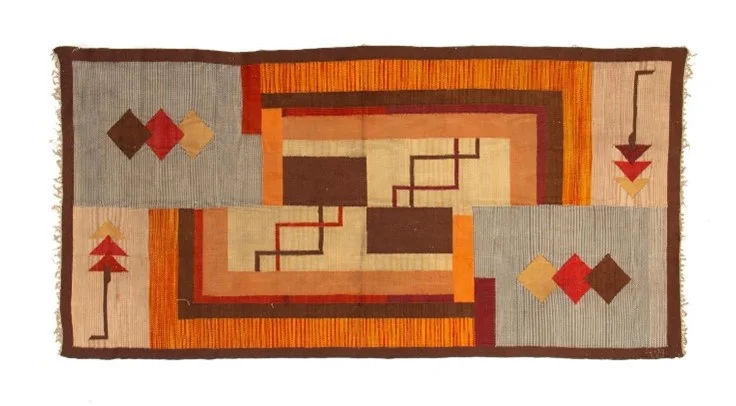 Rhythmical and geometrical patterns were one of the most popular motifs in the interwar period, which reveals art déco's fondness of symmetry. One may also notice that the symmetrical folk patterns and saturated, harmonized colors drew inspiration from the rich tradition of folk art. Striving for making craft equally appreciated as painting or sculpture, the artists made fabrics into works of art, representing Poland e.g. at the International Exhibition of Modern Decorative and Industrial Arts in Paris in 1925. The style of contemporary kilims perfectly reflected the character of Polish art déco, which distinguished itself against the background of other European fabrics, "We are not fully aware that Poland excels in the production of artistic kilims. In 1925, at the International Exhibition of Modern Decorative and Industrial Arts in Paris, Polish kilims competed for primacy with the Swedish kilims by "Föreningen Handarbetets Vänner", which is a huge progress. It makes us believe in the glorious future of the Polish kilims in the international arena." (Naprzód, No. 56, 9.03.1929)