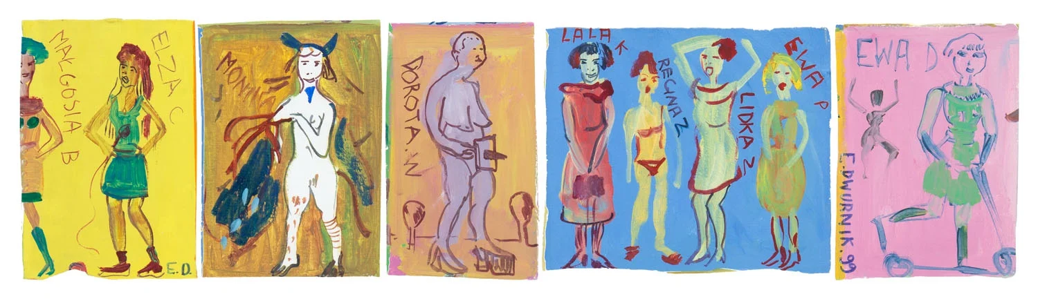 "Później już na kolanach i z wielkimi nożycami Edward Dwurnik ciął obraz na mniejsze części, z których każda przedstawiała jedną z ‘kobiet jego życia'. – Naprawdę tyle ich było? – z niedowierzaniem pytali zebrani. – Oczywiście - odpowiadał Dwurnik i jakby na potwierdzenie słów, co jakiś czas przerywał cięcie, popadając nad niektórymi obrazkami w lekką zadumę. Przypomniawszy sobie damę, ciął dalej. Aż wielki obraz zamienił się na wiele małych, pięknych portretów"