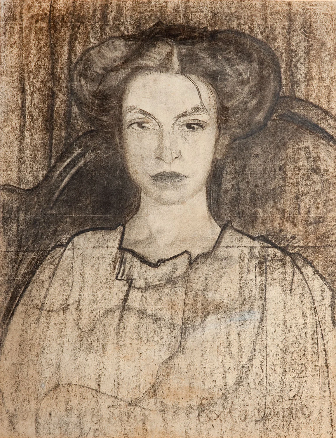 Podobny zabieg Witkacy powtarza w portretach tworzonych wówczas jedynie węglem. Okres ten owocuje w podobizny Ireny Solskiej, genialnej aktorki i kochanki młodego artysty. Ich romans – jak przystało na Witkacego – był burzliwy, przepełniony namiętnością ale również ogromnymi problemami. Postać femme fatale początku wieku Witkacy uwiecznił w swojej pierwszej powieści "622 upadki Bunga", jako demoniczną, nieokiełznaną Akne Montecalfi. Równocześnie zakopiański artysta stworzył serię oryginalnych portretów aktorki, które przewrotnie nazywał "potworami". Witkacy do podkreślenia sensualnej oraz mrocznej natury kobiety używał ekspresyjnej lecz miękkiej i wyrafinowanej kreski. Skala barw została zawężona do czerni i bieli, ewokowała mroczny ale równocześnie zmysłowy nastrój bijący z oblicza kobiety. W podobnym tonie utrzymany jest prezentowany portret Stefanii Jaworskiej z 1910 roku. Mimo klasycznej pozy i realistycznej formuły opracowania fizjonomii artysta potrafił oddać zmysłowy powab modelki.