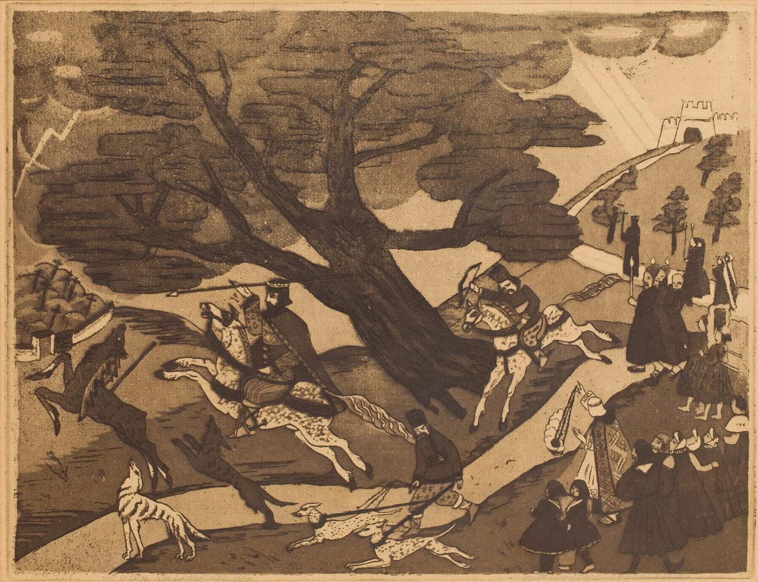 Kolejną wybitną przedstawicielką tego medium była Maria Wolska-Berezowska, której biografia artystyczna w wielu punktach pokrywa się z losami Mińskiej-Golińskiej. Obie artystki studiowały w pracowni Zofii Stankiewicz, a także malarstwo freskowe i grafikę w Szkole Malarstwa i Rysunku Blanki Mercere. Technikę drzeworytu Wolska-Berezowska doskonaliła w okresie okupacji u Adama Półtawskiego, by w latach 50. XX wieku porzucić grafikę na rzecz malarstwa freskowego i ceramiki. W przeciwieństwie do Mińskiej-Golińskiej komponowała swoje grafiki, wykorzystując dynamiczną perspektywę prowadzoną po skosie, sięgając po ikonografię związaną z naturą oraz dawnymi legendami. Często łączyła akwatintę z akwafortą, posługując się wyrazistą kreską, która podkreślała elegancję kompozycji. Układ prac Wolskiej-Berezowskiej przywodzi na myśl sposób aranżacji figur znany z wielopostaciowych tkanin. "Natłok motywów równomiernie rozmieszczonych na całej planszy i ich powtarzalność stały się zasadą kompozycyjną w jej pracach graficznych. (…) W akwatintach Wolskiej-Berezowskiej, szczególnie w scenach rozgrywających się w lesie ("Święty Hubert", "Ostatnie łowy Kazimierza"), widoczna jest fascynacja twórczością Paolo Uccella, najbardziej uderzająca w sposobie ukazania zwierząt" (Katarzyna Kulpińska, op. cit., Toruń 2017, ss. 281–282).