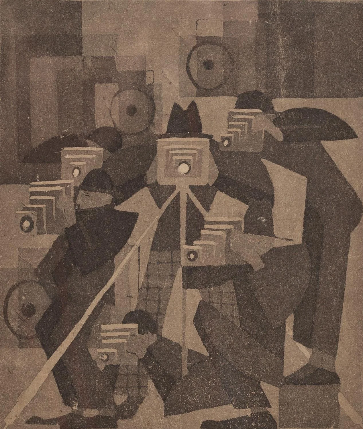 Idealną ilustracją nowatorskiego stylu Mińskiej-Golińskiej jest akwatinta "Fotografowie". Artystka podejmuje w niej temat wyjątkowo współczesny. Geometrycznie uproszczone miechy aparatów fotograficznych skierowane są wprost na widza, natomiast pozostałe elementy kompozycji – sylwetki fotografów oraz okrągłe lampy błyskowe – podporządkowane zostały rygorowi syntetycznego układu. W odróżnieniu od wielu innych artystek pracujących w technice akwatinty Mińska-Golińska nie sięgała po niezwykle wówczas popularne motywy ludowe. "Twórczość tej graficzki jest odbiciem tempa czasów, w których żyła. Jej prace odzwierciedlają entuzjastyczny stosunek do współczesności, aprobatę wobec postępu technicznego przejawiającego się w udogodnieniach codziennego życia" (Katarzyna Kulpińska, op. cit., Toruń 2017, s. 398). Mimo że artystka tworzyła również kompozycje o tematyce religijnej, jej ikonografia – obejmująca motywy nowoczesnego budownictwa, industrializacji i nowinek technicznych – pozostaje zjawiskiem odosobnionym na tle twórczości współczesnych jej artystów i artystek.