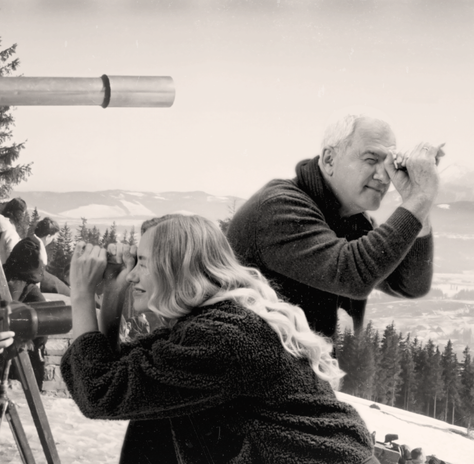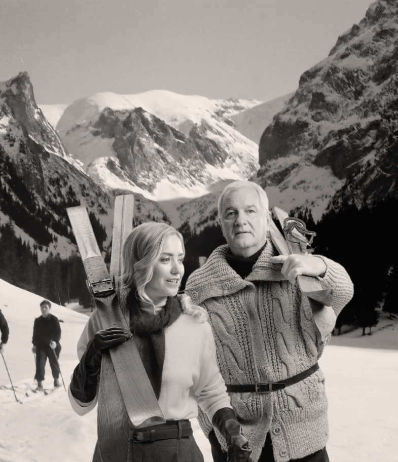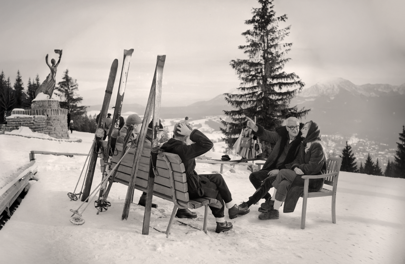 „Pociąg do Zakopanego” to unikatowy projekt, który dopełnia sesja fotograficzna Andrzeja Świetlika – legendy polskiej fotografii, współzałożyciela grupy Łódź Kaliska, portrecisty takich postaci jak Ryszard Kapuściński, Kora Jackowska czy Czesław Niemen. Inspiracją stała się tradycja atelierowej fotografii portretowej, popularnej w pierwszej połowie XX wieku – ujęcia wykonywane z charakterystyczną scenografią i światłem, które nadawały portretom ponadczasowy charakter. Na tle plansz z Tatrami, portrety z nartami w dłoni albo w góralskich pelerynach były czymś więcej niż pamiątką – stanowiły część lokalnej mitologii. Nawiązując do tej konwencji, Świetlik stworzył portrety artystów, Magdaleny Berbeki i Michała Zaborowskiego, zachowując klasyczną kompozycję, ale wprowadzając element współczesnej narracji. Wykorzystując archiwalne fotografie z Narodowego Archiwum Cyfrowego – przedwojenne Krupówki, Gubałówkę, zakopiański dworzec i górskie krajobrazy – artysta wykreował jedenaście scen pełnych humoru i nostalgii. Efektem jest seria zdjęć, które nie tylko dokumentują projekt, lecz także tworzą jego wizualną narrację – opowieść o spotkaniu, podróży i wzajemnej inspiracji. Fotografie oddają energię Zakopanego – miejsca, które zawsze przyciągało ludzi z temperamentem i potrzebą tworzenia.