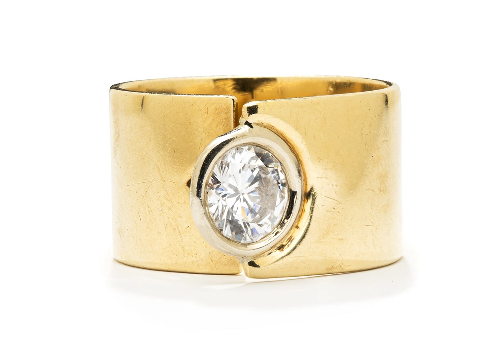 złoto pr. ~ 0,585, 1 brylant ~ 0,98 ct I/SI, masa: 8,61 g, rozmiar: 13
