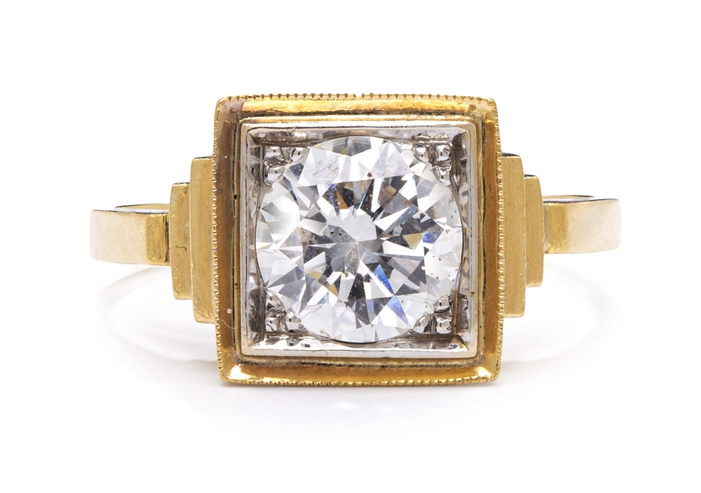 złoto pr. ~ 0,750, 1 brylant ~ 1,50 ct I/SI2, masa: 5,64 g, rozmiar: 17*