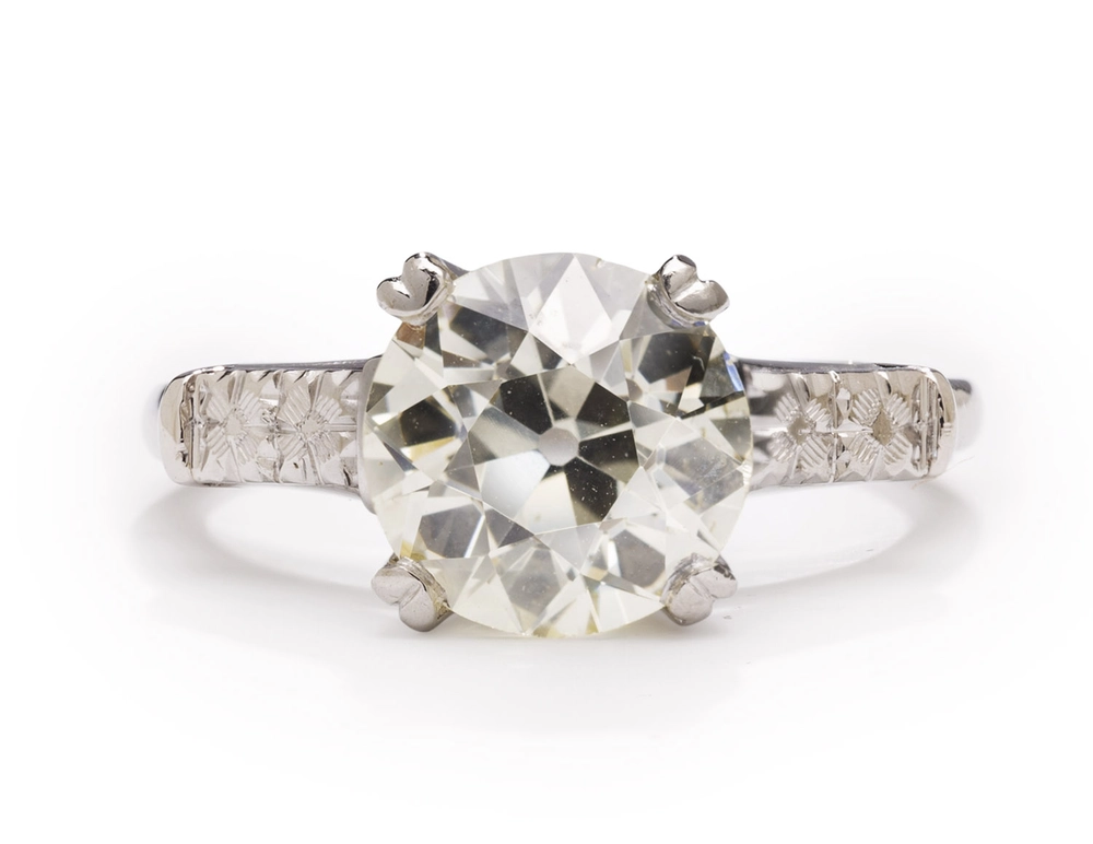 platyna pr. ~ 0,950, iryd, 1 brylant ~ 2,90 ct L/VS2 w szlifie przejściowym, masa: 6,28 g, rozmiar: 14*