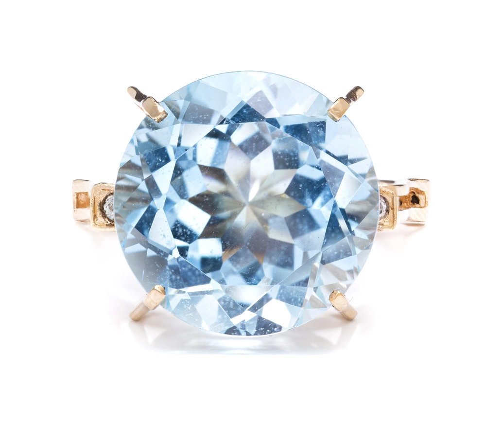 złoto pr. ~ 0,585, 1 topaz o śr.: 15 mm, 2 brylanty ł. ~ 0,04 ct I/SI, ukraińska punca państwowa, masa: 6,60 g, rozmiar: 15*